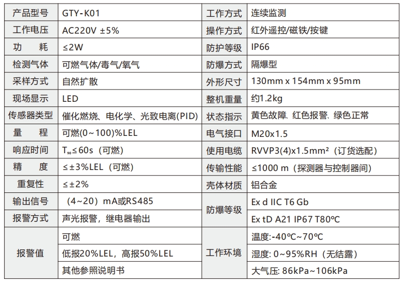 GTY-K01可燃?xì)怏w探測器是專為加油站設(shè)計的一款高精度防爆型油氣探測傳感器,靈敏度高,響應(yīng)時間快,抗干擾程度高、連續(xù)工作壽命長,安裝簡單方便。儀表界面實時油氣濃度顯示,自帶防爆型聲光報警裝置,當(dāng)環(huán)境油氣濃度達(dá)到設(shè)定的報警值時,自動發(fā)出聲光報警提示加油站工作人員,不需要安裝控制器后臺。