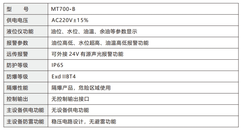 MT700-B液位監(jiān)控系統(tǒng)是在MT210監(jiān)控系統(tǒng)的基礎(chǔ)上延伸而來,除實現(xiàn)液位儀常用功能外??赏饨託怏w報警器檢測單元、聲光報警器遠傳單元,本產(chǎn)品為隔爆型產(chǎn)品可直接應(yīng)用于撬裝加油站主體結(jié)構(gòu)內(nèi)進行顯示。本系統(tǒng)主要由CRT-M5系列磁致伸縮液位計、MT700-B監(jiān)控主機。該系統(tǒng)通過對油罐液位、水位、平均溫度等數(shù)據(jù)的精確測量,以有效的管理撬裝加油站的進銷存及交接班等業(yè)務(wù)。