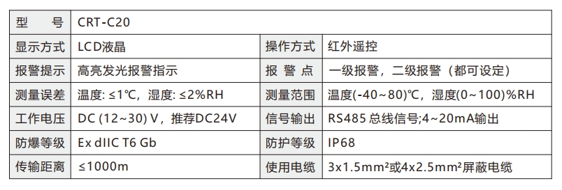 本產(chǎn)品是一款高性能溫濕度變送器,它測量環(huán)境的溫度和濕度以數(shù)字的形式顯示在本地的顯示屏上,同時響應(yīng)主機(jī)發(fā)來的命令,將測量的數(shù)據(jù)以數(shù)據(jù)包的形式通過RS485總線上傳主機(jī)。該溫濕度變送器具有體積小、重量輕、量程寬、精度高、且響應(yīng)速度快和長期穩(wěn)定性好等特點,使它廣泛應(yīng)用于地下管廊、樓宇自動化、氣候與暖通信號采集、倉儲物流以及醫(yī)療行業(yè)、通風(fēng)管道大棚等各種需要對空氣中的溫濕度進(jìn)行測量和控制的領(lǐng)域,