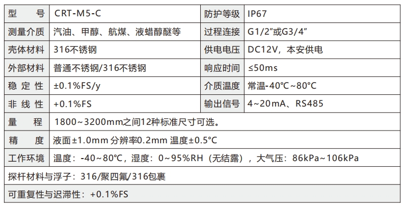 CRT-M5-C磁致伸縮液位計(jì)是專為撬裝加油站裝置或移動式地上戶外露天儲罐設(shè)計(jì)的一款專用產(chǎn)品。本產(chǎn)品雙腔體隔離設(shè)計(jì),從容應(yīng)對復(fù)雜的戶外環(huán)境,起到防水、防塵、防油、防滲油、防止系統(tǒng)連接線路虛接或短路的作用。
